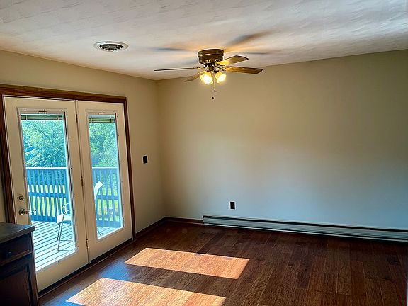 Spacious deckBeautiful hand-scraped hickory flooringCozy wood-burning fireplaceBrand-new carpet