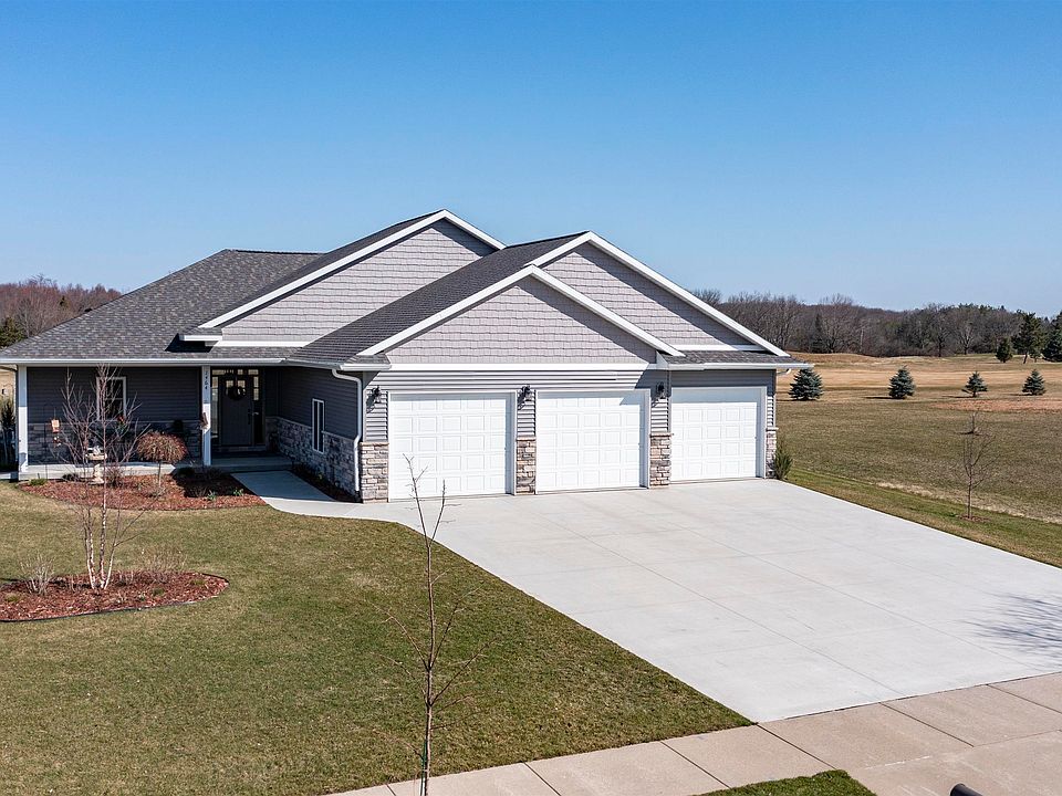 Step into luxury living on Foxfire Golf Course without an HOA! This custom-built beauty boasts open-concept living, custom cabinets, ample storage, and a matching appliance set. Enjoy natural light with multiple patio doors off the dining room and den. Home comes with a heated 3-car garage with EV 220 car charge plug, unfinished heated and insulated basement, and a spacious mudroom with sink. Indulge in the luxury of custom glass showers, a large pantry, and a master en-suite bathroom with a walk in shower and walk in closet. Cozy up to the custom gas fireplace with a natural wood mantle and remote. Full unfinished basement with 9 foot ceilings, ready for you to turn it into the space you want! This home promises a lifestyle of elegance and comfort!