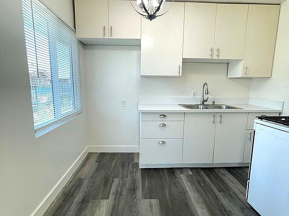 Experience the charm of coastal living in Long Beach, CA with this delightful 3-bedroom, 1-bathroom unit. The unit is tastefully designed with fresh two-tone paint and vinyl click flooring, creating a modern and inviting atmosphere. The kitchen is equipped with quartz countertops and a gas stove, perfect for those who love to cook. The bathroom features a reglazed tub and a stylish bath vanity. Living room is fitted with a ceiling fan for your comfort and new blinds/window screens for your privacy. The building is gated for added security. Please note that parking is available on the street only. This apartment is a perfect blend of comfort and style, waiting for you to make it your home.