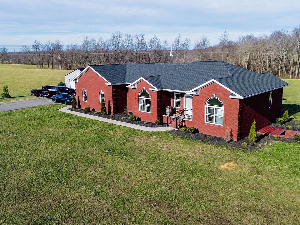 This stunning 2023 brick home offers privacy, scenic views, an abundance of wildlife, combining modern comfort with thoughtful design. The spacious en-suite features a walk-in closet, an oversized jetted tub, a walk in shower and double vanity sinks. The well appointed kitchen is equipped with modern appliances, quartz countertops, soft-close cabinetry, and a counter height island with seating for two and microwave storage. The finished basement provides an oversize recreational or family room, a large bonus office space, a convenient half bath and two additional storage areas-ideal for flexible living and organization. A 750 sq. ft. workshop with electric and concrete flooring adds exceptional functionality, along with a 400 sq ft. boat cover for outdoor storage. Additional highlights include crown molding throughout, 10 ft. ceilings, double HVAC units serving both levels, poured concrete foundation walls, an 80-gallon water heater, gas logs with bedrooms and utility on the main level. All of this situated on over 5 acres of exceptional Casey county property. This magnificent property offers quality construction, modern features and peaceful seclusion. Located just 5 minutes from downtown Liberty and 30 minutes from Lake Cumberland Resort. Call today to schedule your private showing.