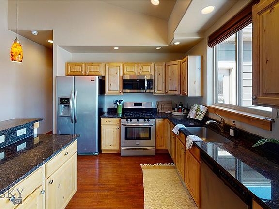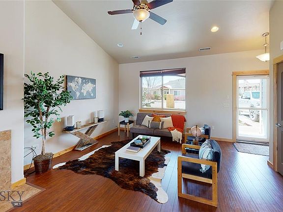 This charming homes back up to open space for a fantastic view of the Bridgers from your back patio. We have replaced all the carpeting for you already, and had it professionally cleaned, so it's ready to go! Walk through the front door into the spacious open living spaces with gas fireplace, granite counter tops, ample kitchen storage... all the niceties you dream of. This home boasts a split plan, so there are 2 bedrooms with a bathroom in between on one end of the home, and a large master on the opposite. The master bathroom has a beautiful walk in tile shower and double vanity, again, you'll find those granite tops! A laundry, which does include the washer and dryer, with a 2 stall attached garage round this lovely home out. Come see! It might be your dream home!!