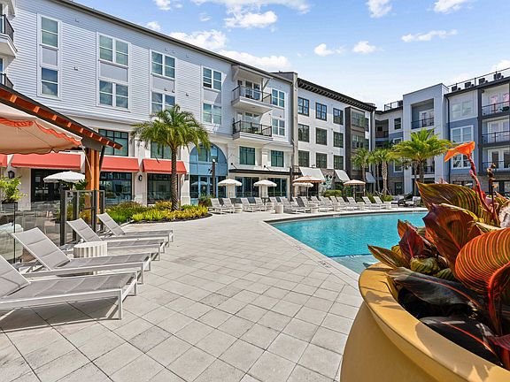- Exterior features: 2-Story Fitness with Cardio and Weight Machines, 9-11 Foot Ceilings, Barbecue, Climate Controlled Breezeways, Co-working Space and Offices, Convenient Elevators, EV Charging Stations, Edge-Lit Vanity Mirrors, Foyer with Built-In Bench and Drop Storage*, Full-Size Pantries*, Garages and Storages Available for Rent, Garbage included in rent, High-speed Internet Ready, Internet included in rent, Keyless Entry and Smart Thermostats, Kitchen Islands with Signature Pendant Lighting*, Large Cage Storage Units, LargeTub Semi-FramelessShower, Lawn, Mail Pavilion, Main Street Plaza Gathering Space, Outdoor Communal Pavilion, Package Receiving, Pet Washing Station, Plush, Textured Carpeting in Select Areas, Prewiring for Flat-Screen TVs, Quartz Countertops with Single Basin Sink, Resident Tavern and Bar, SamsungFront-LoadWasherDryer, Shaker-Style Cabinetry with Pull-Out Trash, Soft-close Drawers in Kitchen and Bath, Sundeck, TV Lounge, Timeless White Subway Tile Backsplash