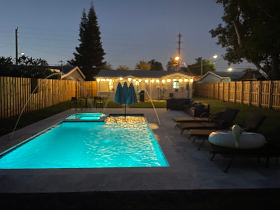 Furnished winter rental! Walk to Wilton Drive! Open floor plan and high ceilings give this house a cute cottage vibe. brand new heated pool and hot tub. Two bedrooms, one bathroom and large backyard. updated kitchen with gas stove and stainless steel appliances. recently renovated bathroom and fresh paint throughout. looking for a six month lease starting ASAP. 3 smart TVs. Two covered porch's. Fenced in yard. Landlord pays all utilities with the exception of Electric so tenant can use pool heater at their discretion.
