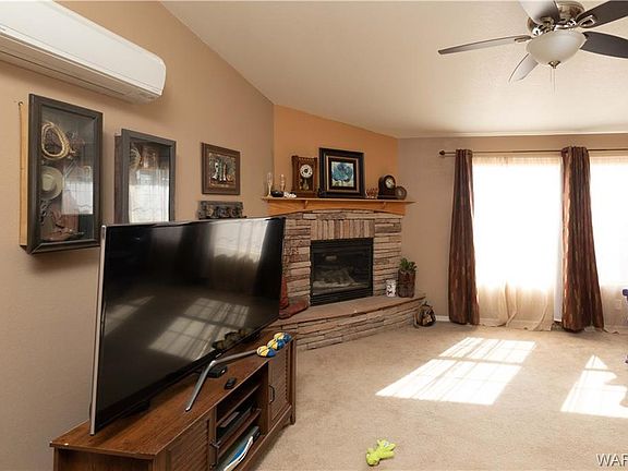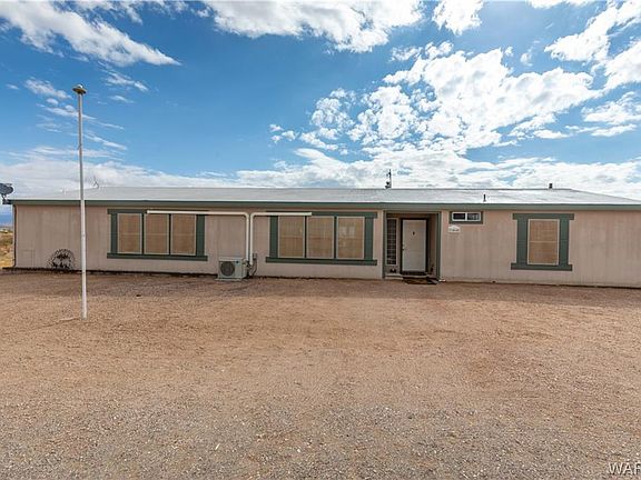 Huge 4 bedroom 2 bathroom home with 4 car detached garage with guest quarters** 2.35 acres with horse privileges'*2297 livable sqft home plus detached 4 car garage with attached shop/office(approximately 350 sq ft) with full bath(tile flooring)**. Electronic coded entry gate* LOW UTILITY COSTS W/4 newer mini-split systems *Water purification system with UV* Interior features: open floor plan, vaulted ceilings, fans and large view windows* enter in to a lovely living room* enjoy cooking in this large kitchen with cabinets galore. Open concept, center island, pantry, appliances(stove, microwave & dishwasher). Large family room too, with a propane log fireplace, comfortable carpeting*Split bedroom floorplan* King-size owners suite, large windows, vaulted ceilings, walk-in closet, dual sinks, separate jet tub/walk-in shower, linen closet* 3 good size bedrooms* guest bathroom has and extended vanity & walk in shower with grab bars* *Indoor laundry room*HUGE 4 car garage with an attached shop/office with tile flooring and bathroom with walk-in shower* Park all the toys on this 2.35 acre lot* 2 X 2000 gallon water storage tanks*RV Parking*. The views from this property are astounding and are 360. This property is residential/agriculture so large livestock is not an issue. This is a fabulous property is very peaceful and away from all the noise but still close for shopping with Kingman around 15 miles away. Bring the chickens, goat, horse and furry friends and make this your home**