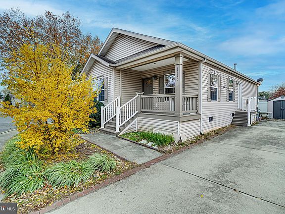 This property requires the owner to pay $1755/month in ground/land rent. The home can then be financed or paid for in cash. Welcome to this corner unit with a spacious front porch. There is driveway parking for 2 cars as well as a fenced side yard and shed. Freshly painted interior. Hardwood floors throughout the common areas. Separate living and dining areas and a large front facing kitchen. Main level laundry/utility room with access to the driveway. Secondary bedroom and a hall bath. Primary suite with a luxury bath with separate tub and shower. Community amenities include a pool, fitness room, clubhouse, basketball court and tot lot. Walk to shopping and restaurants. Close to major commuter routes.