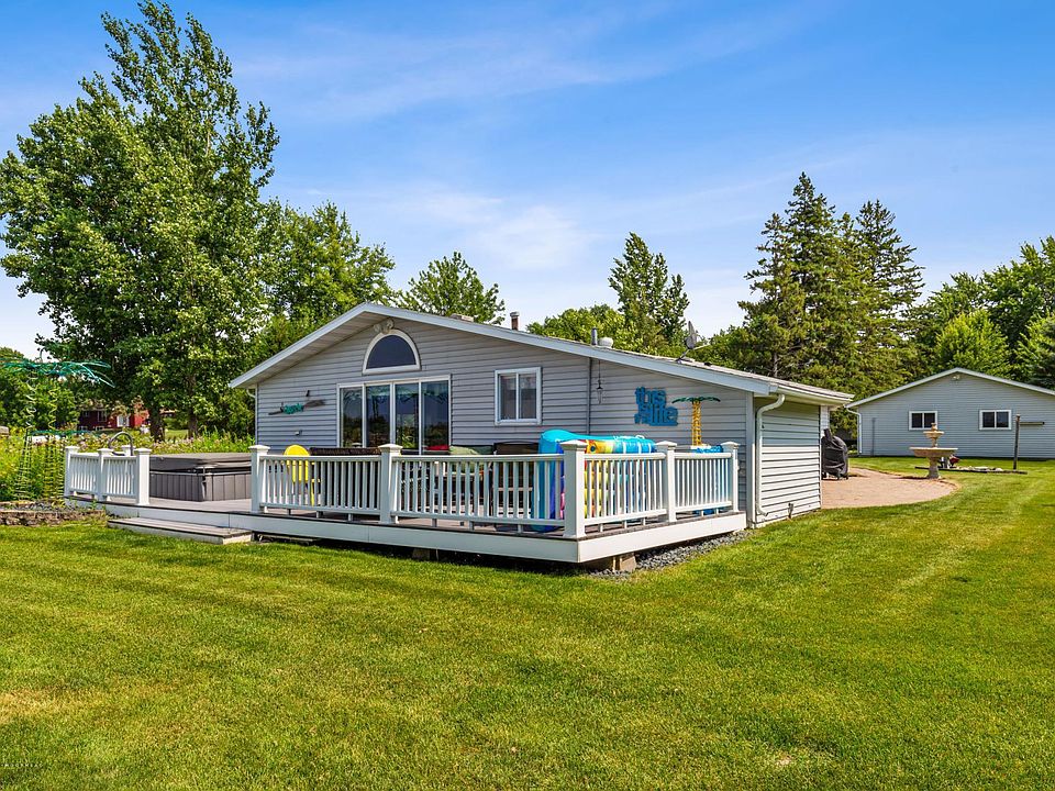 Professional pictures coming soon. This beautiful Big Cormorant Lake home is larger than it looks. 4 bedrooms, 2 baths and a dining room. This lot is flat and steps from enjoying the crystal clear water. Maintenance free deck, Cobblestone walk way and patio, hot tub are some of the many bonuses to this property. The garage has additional living/ game room space with a sauna, pool table and large tv for entertaining. The sprinkler system, firepit area are some additional perks to this amazing property. Part of the home has floor heat. The family room is vaulted with a paddle ceiling fan. This is easy living