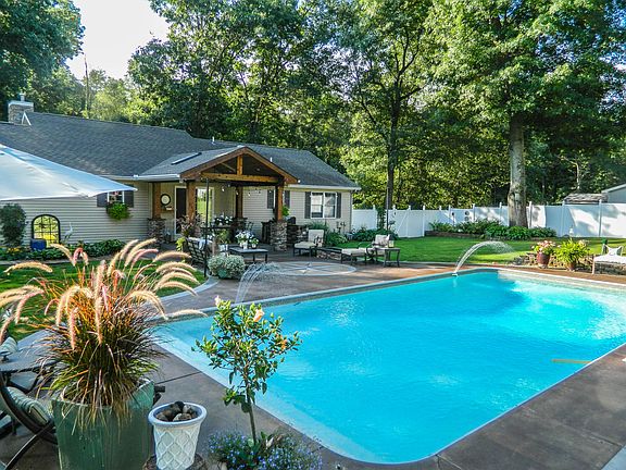 This is the home you've been dreaming of in a perfect location with all the bells and whistles. There is nothing like this home on the market with so many high-end upgrades. The beautifully landscaped exterior boasts an inviting front porch, a well-manicured lawn and sprinkler system, a private fenced in back yard which is meticulously manicured and includes outdoor entertainment area with cedar covered porch, outdoor grilling station and outdoor tv. Not to mention the heated, saltwater pool area surrounded with a stunning concrete patio, stone firepit, raised vegetable gardens and 2 nice size storage sheds. Bright and airy 3 bed/3 bath Ranch home includes gas fireplace with a stunning Kitchen which includes custom maple cabinets, granite counter tops, Stainless steel appliances and beautiful maple hardwood floors. High quality tile work to be seen in the bathrooms. Basement includes large entertainment room and bonus room. This is a must-see! BUYER TO VERIFY ALL LISTING INFORMATION INCLUDING ANY/ALL MEASURMENTS