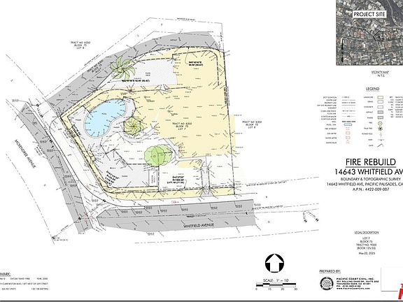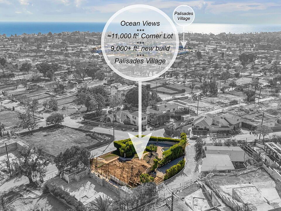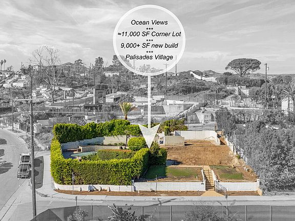 Rare 11,000 square foot mostly flat and elevated corner lot near the Palisades Village. The property is cleared and ready for brand new construction of a large 3-level new home - upwards of 9,000+ square feet under current building codes (not in the coastal commission zone). 14643 Whitfield Ave. sits above the Alphabet Streets and a new construction home will have breathtaking panoramic ocean views and a spacious backyard on its larger-sized lot. Additionally, this corner, coupled with a short road in the back, creates flexibility in designing the exact location of a garage. The property resides just moments from the Palisades Village known for boutique shopping and award-winning restaurants; top-rated local schools, scenic hiking/mountain biking trails, bike paths, and world-class beaches.Adding to this unique offering, this property was last on the market 65 years ago. This is not simply another Pacific Palisades land sale; it is a chance to claim a piece of Palisades history that is nestled within the coveted Chautauqua Heights subdivision, celebrated for its expansive lots and iconic ocean views. The previous/original home was the 53rd house ever built in the Palisades back in 1924, a residence cherished for generations. Its story speaks to permanence, heritage, and the timeless allure of this coastal enclave. And now it's ready for the next chapter and will be part of the resurgence of the Pacific Palisades.EPA (Phase 1) remediation & debris removal (Phase 2) are both complete. The foundation has also been removed to prepare for new construction. New home builds are well underway in the neighborhood, with the Caruso Village set to reopen in 2026. Some schools are already back and some businesses are reopened, and others are slated to reopen. Once complete, the Pacific Palisades will be more beautiful than ever before as it's still one of the most highly desired coastal enclaves in all of California.