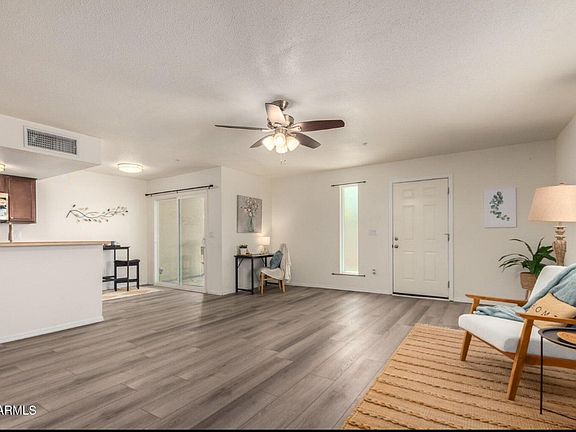 Come see this beautifully renovated 2 bed/1 bath condo, updated in 2019, features a modern kitchen, stylish bathroom and additional flooring upgrades in 2021. This second-floor corner unit offers unparalleled privacy with only one shared wall and no neighbors below. Enjoy breathtaking views as the property overlooks a serene wash with no rear neighbors. Nestled close to Four Peaks Neighborhood Park, you'll have easy access to outdoor activities, including nearby hiking trails and parks. The community has a pool across from the unit, ideal for relaxation and leisure. With top-rated schools and convenient amenities.This home blends comfort, convenience, and natural beauty. There is a large PRIVATE storage unit in the carport area. Come See!.