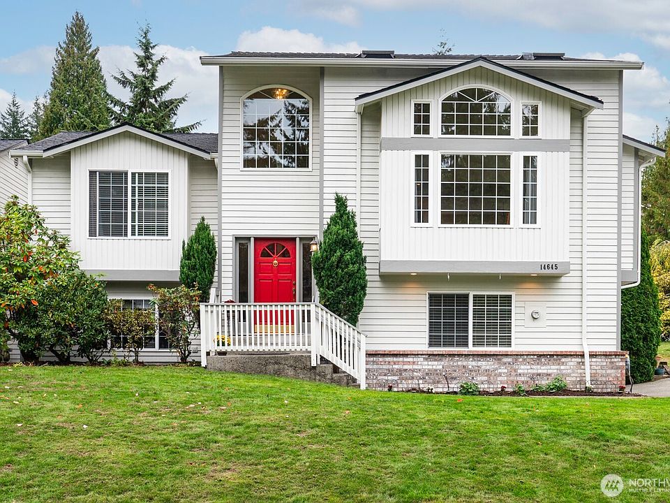 Beautifully remodeled 3-bed, 2.5-bath home in desirable Château Woods. Bright and inviting with cathedral windows, vaulted ceilings, and a cozy gas fireplace. The kitchen features new granite countertops, stainless appliances, refinished cabinets, PVC flooring, and fresh interior and exterior paint, flowing to dining and living areas. Step onto the fenced deck and enjoy the peaceful backyard and valley views. The main-floor primary suite offers a walk-in closet, soaking tub, dual sinks, and separate shower. Upstairs: 2 bedrooms, full bath, airy loft. Lower level: family room with fireplace, large laundry, and 3-car garage. HOA maintains the yard. Walk to wineries and the new Woodinville Harvest district. Quick access to Redmond, Kirkland.