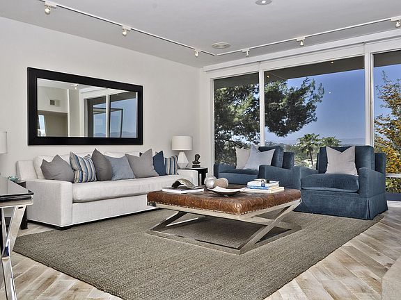 Beautiful, two-story modern home located on a private street in a quiet neighborhood of Sherman Oaks, California. When you first walk into the home, you are immediately captivated by the gorgeous, unobstructed views of the valley. The floor-to-ceiling windows in the living and dining room, gives this home a spacious feel and allows an abundance of natural light to enter the home. The dining room has glass sliding doors that open up to a patio and of course, that amazing view! Step-down bar opens to a large gourmet kitchen with state of the art appliances, and a spacious breakfast bar. Master bedroom features a fireplace and a spa-like bathroom with an over-sized jetted tub. Two bedrooms are located near the master. One of the lovely bedrooms located on the lower floor has its own private entrance. The lower level is great for a theatre room, home gym, or game room. This home features a zen like garden and flat grassy area for gardening.