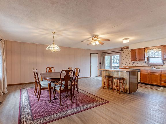 This property offers a quiet oasis in Corydon sitting on a 1 acre lot surrounded by farm land. Stone exterior house has an extra deep, 2 car attached garage offering convenience for the homeowner. If more storage is needed there is another 3 storage sheds on the property as well. There is a large open concept kitchen and dining area with newer vinyl flooring. 2 BDR on the main living area, 1 BDR upstairs with a large storage area. The bathroom has a newly remodeled walk in shower. Home has only been owned by one family, and it's now ready for its new owner to make new memories.