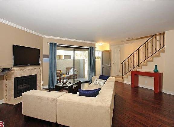Best value in Sherman Oaks! Gorgeous 2 story, redone from top to bottom! Private patio. Bright and open! Gorgeous dark hardwood floors, cozy fireplace! Open dining area. Awesome wetbar! Huge gourmet kitchen w/ breakfast area and pantry! Granite counters, beautiful custom wood cabinets and travertine floors! Stainless stell appliances. Lavish guest bath! Two huge master suites upstairs, larger one with cathedral ceilings, walk-in closet & balony. Beautiful custom bathrooms. Bonus room is actually basement/direct garage access room that may be used as office, den. DIRECT ACCESS from garage to the unit. Side by side parking. Separate laundry area in Unit with new, stainless steel Washer and Dryer.