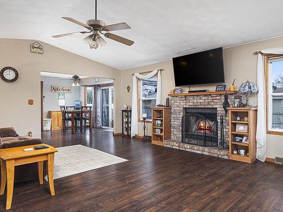 This stunning 4-bedroom, 3-bathroom home is packed with updates and ready for its next owner! Step inside to find vaulted ceilings that create a spacious, open feel, complemented by new LVP flooring. The inviting living room features a wood-burning fireplace, perfect for cozy evenings. The updated kitchen and bathrooms add a modern touch, making this home truly move-in ready. Downstairs, the finished basement is built for entertainment, complete with a bar and built-in entertainment center—ideal for game nights or relaxing with friends and family. Outside, the fenced-in yard provides privacy and plenty of space to enjoy the outdoors. Additional updates include a new roof (2024), a newer water heater and water softener, ensuring peace of mind for years to come. Come make this house your home!