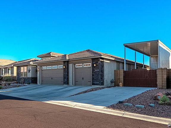 Gorgeous & Modern Farmhouse style home nestled at the base of the Gila Mountains this home brings new meaning to tranquil living. You will fall in love with this home's layout, from the warm entryway to the open concept living, dining, and kitchen area. The kitchen is a dream come true, featuring a giant waterfall granite island, farmhouse sink, and walk-in pantry. Entertaining will be so fun thanks to the ability to prep meals while you gaze out into the backyard through elegant panoramic sliding glass doors. Ideal multigenerational living thanks to a second primary bedroom with private en suite bathroom. Beautiful, white plantation shutters adorn all windows. Very well, thought-out laundry room with folding area and sink. Exterior boasts a 45-foot RV port with a 50 amp/sewer connection and an insulated, epoxy-finished, four-car tandem garage. The backyard will be the place to be to enjoy the upcoming enchanting Arizona fall and winter weather! Easy care xeriscape landscape and an extended back patio/pergola with built-in seating is a must see.