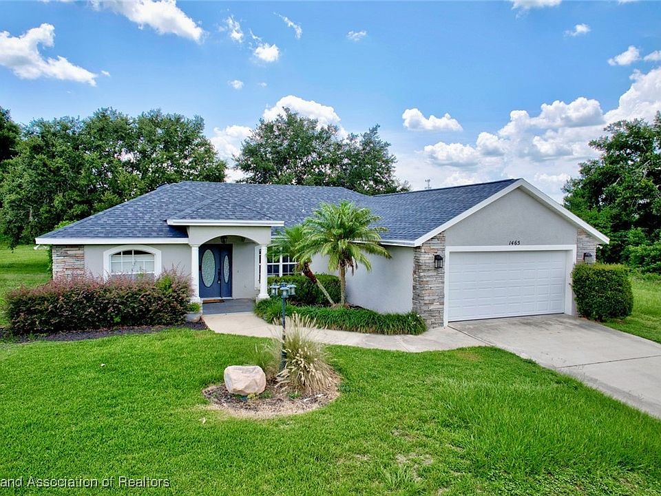Welcome to this beautiful 3-bedroom, 2-bathroom home offering nearly 1,700 square feet of comfortable living space, tucked away on a quiet cul-de-sac in Avon Park. Nestled in a peaceful neighborhood, this home offers exceptional privacy and charming curb appeal with stone accents, decorative columns, and a welcoming covered front entry. Step inside to find warm wood flooring that adds a cozy, inviting feel throughout the main living areas. The kitchen is a chef’s dream featuring modern gray cabinetry, granite countertops, a walk-in pantry, newer stainless steel appliances, and a bar-top counter that opens to the living room, perfect for entertaining. A formal dining room just off the kitchen provides the ideal space for family meals and gatherings. The spacious living room boasts an electric fireplace and sliding glass doors that frame views of the backyard and lead to a 12'x20' screened-in patio perfect for relaxing or entertaining. All three bedrooms feature stylish wood-look tile flooring, and the master suite is a true retreat with a large walk-in closet and a beautifully renovated en-suite bath showcasing a deep soaking tub and tiled walk-in shower. The oversized guest bathroom includes direct access to the backyard, an ideal setup if you're planning to add a pool in the future. Additional highlights include a new storage shed, brand new 2025 roof, new gutters being installed, and an attached 2-car garage. This move-in ready home combines privacy, style, and functionality in a perfect location. Schedule your showing today!