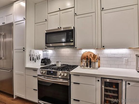 Simply stunning! Completely remodeled, first floor condo! Nestled in the corner of East Village, this beautifully renovated condo seamlessly blends elegance and comfort. No detail has been overlooked. From the stunning kitchen to the bathrooms, every inch of this condo has been updated. The kitchen features custom cabinets, large island, quartz countertops, Thermador refrigerator, wine fridge, cast iron sink, gas range. Luxury vinyl flooring. Bathrooms are a spa-like retreat - new tubs, fixtures, vanities with marble countertops. New HVAC and plumbing! Step outside to discover a 300 sq ft private patio. This outdoor space is a rare find in downtown living. Two tandem parking spaces. Union Square has on-site mgt, HOA with well-funded reserves, fitness center, indoor spa, community room, bike storage, guest parking, BBQ grills and electric car charging. Easy access to the 5, 94 and Hwy 163. East Village is experiencing tremendous development - buy now before the values go up! VA Welcome.