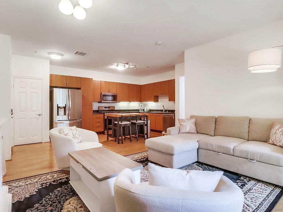 Welcome home to this stylish and comfortable 2-bedroom, 2-bath condo with 1,013 sq ft of open living space. This bright and inviting home features a kitchen with all the right upgrades - stainless steel appliances, granite counters, and a clean subway tile backsplash. The kitchen flows directly into the living and dining areas, making it perfect for entertaining or everyday living. Enjoy peaceful mornings and relaxing evenings on your quiet, courtyard-facing balcony. The unit includes two tandem parking spaces with convenient storage on the back wall, ideal for seasonal gear, or extra belongings. Residents enjoy access to resort-style amenities including a sleek resident lounge with TV and pool table, a newly updated fitness center complete with spa and sauna, EV charging stations, and multiple BBQ areas throughout the community. Within walking distance to Balboa Park, the historic Gaslamp Quarter, restaurants, coffee shops, bars, Petco Park, and everything Downtown has to offer. Experience downtown living at its best, close to everything, yet tucked away in a tranquil, amenity-rich setting.