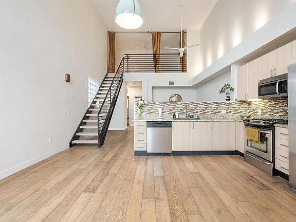 Located in highly sought-after Union Square, this top-floor, 2-story loft is a unique 1-bedroom + den end-unit that offers a modern and secure living experience. The main living area features a gorgeous updated kitchen, a den and an open floorplan that seamlessly integrates soaring high ceilings and beautiful custom light fixtures. Upstairs, you'll find a spacious bedroom, adding privacy and comfort to your living space. This unit is equipped with smart home features, including automated window blinds, a Nest system for temperature control and security camera, and a Yale smart door lock. Upgraded modern ceiling fans, engineered hardwood floors, and 2 glass block windows that bring in a ton of natural light enhance the overall ambiance of this stylish home. For your convenience, the condo includes an in-unit washer and dryer, and 1 assigned underground parking spot. Union Square offers exceptional amenities such as a fitness center, indoor spa, rec room, bike storage, guest parking, and electric car charging stations. Situated in Downtown's rapidly growing East Village neighborhood, you'll have easy access to the 5, 94, and Hwy 163, as well as endless entertainment options, including nearby upscale restaurants, bars, Petco Park and more. Just a few blocks away from the new East Village Green Park project, this condo is perfectly positioned for those looking to invest before property values rise. Don’t miss out on the opportunity to own this stunning loft and experience the vibrant lifestyle of East Village.