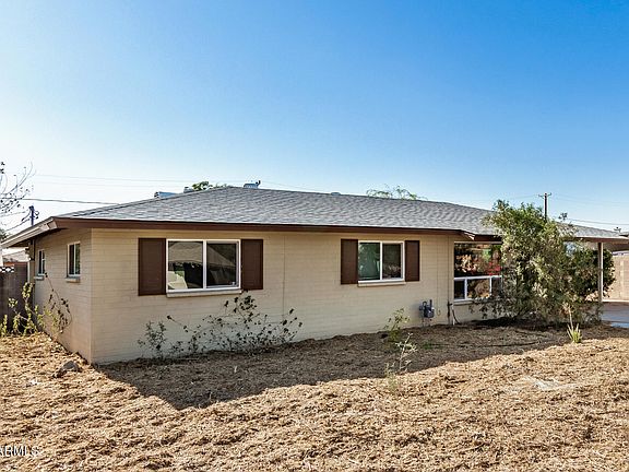 Own this charming 3-bedroom, 2-bath property in central Mesa on a large lot with no HOA! Inside, you'll find a sizable living room with a ceiling fan, soft paint, and tile flooring throughout. The kitchen features recessed lighting, abundant storage, ample counters, built-in appliances, and a functional service window that connects with the family room. Enjoy hosting gatherings in the huge family room, promoting a greater traffic flow & allowing easy access to the backyard through the sliding doors. The main bedroom has a walk-in closet, outdoor access, and a private bathroom. The massive backyard offers a cozy covered patio, a convenient shed for extra storage, and lots of space to fit a pool & create a dream oasis. Don't miss this opportunity!