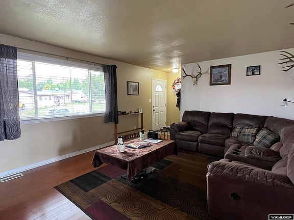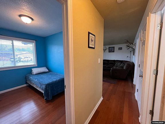 SPACIOUS 5 bedroom, 3 bathroom house - large living room with wood plank floor. Three bedrooms on the main level has ample closet space. Main floor bathroom has tiled shower and angled shower curtain holder for more space. Primary bedroom has an en-suite with a tiled walk-in shower. Large kitchen has cabinets that extend to the top of the ceiling! Nice pantry style cabinets for food and more. Downstairs has two additional bedrooms. The larger of the two has a double sized closet. Family room is extra long and can hold a ping-pong table or your pool table. Understairs storage for added convenience. The laundry room has a folder counter as well as the new water heater (6 months old). There is a place to install a gas fireplace if you'd like. Home has some parking off of the attached two car garage area, dog run in the back yard and easy alley accessl.Nice home that is bright and clean home...ready for you to be the new owner.
