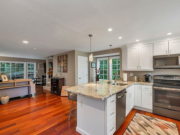 Rare End-Unit condo available in Tidcomb, in the Villages at Granite Hill. This home has been beautifully renovated with a new kitchen with granite counters and peninsula, new appliances, hardwood floors throughout the first floor and new half bath. Enjoy the open concept flow from the kitchen into the living room and out your sliders to enjoy your private deck surrounded by trees creating natural shade, and a shed for storage. The upstairs boasts 2 large bedrooms with sizeable closets, washer/dryer and new full bath with gorgeous tile work. The bonus space is the large loft on the third floor that is fully carpeted with skylights and space for an office, home gym, family room, you name it! The condo fee offers many amenities and includes pools, walking trails and tennis/basketball/pickle ball courts. Offer Deadline, Tuesday, August 6th at 2:00 pm.