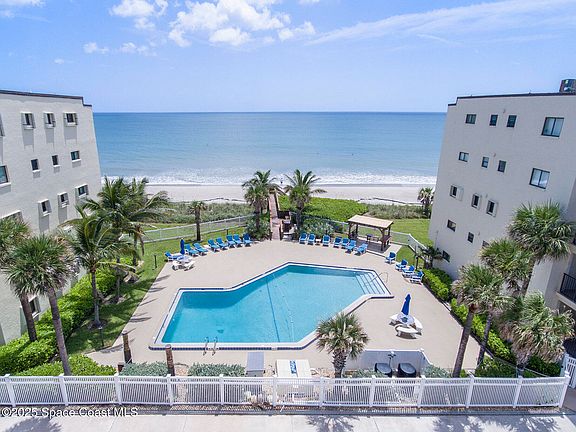 Embrace easy coastal living in this priced to sell oceanfront 2 Bed, 2 Bath Penthouse in Satellite Beach! Top-floor condo offers comfort, convenience, & amazing ocean views from your private balcony with storage & accordion shutters. Recent updates include Energy Star-rated impact sliding doors 2025, new electric panel 2025, & hot water heater 2023. Concrete Restoration, Roof Replacement, & Elevator modernization were completed. Inside, enjoy updated tile flooring throughout, open concept living & dining area, a spacious primary suite with access to the private balcony, & in-unit Whirlpool washer & dryer for convenience. HOA fee includes insurance, water, pest control, internet & cable, heated pool, lawn care, & reserve funding, & on-site management. 1 pet up to 25lbs & 60 day minimum rentals. Community perks include private beach access, a secured pool with outdoor shower, car wash area, & 1-car garage. Start your mornings with the sunrise and end your days to the sound of the waves!