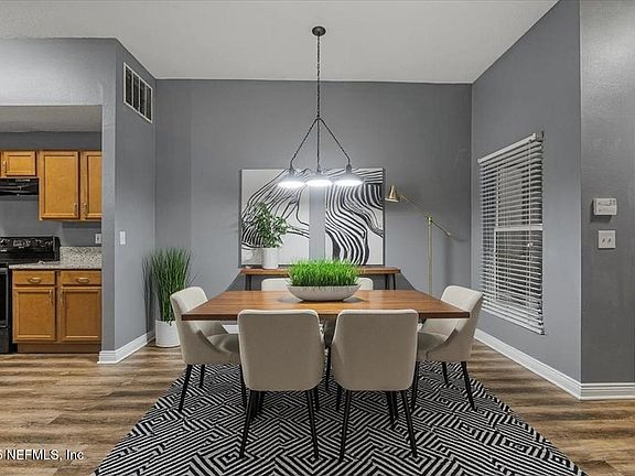 Lowest sq. ft. price in community! Step into this charming 2 bed/bath first-floor unit offering 1,118 square feet of comfort and style. The open floor plan features modern vinyl flooring throughout, creating a seamless flow from room to room. unit features a thoughtfully designed split-bedroom layout—perfect for privacy or guests. Enjoy the updated kitchen boasting sleek granite countertops, ample cabinetry, and a breakfast bar that opens to a spacious living room—ideal for entertaining or relaxing. Both full bathrooms feature updated vanities with granite counters, creating a cohesive, upscale look. Nestled in a prime location just minutes from I-295 and I-10, this home offers quick access to NAS Jacksonville, shopping hubs, and a short jaunt to Jacksonville's stunning beaches. Whether a first-time buyer, downsizing, or seeking an investment opportunity, this well-kept unit is the perfect blend. Low monthly fees, making this an excellent opportunity for homeowners or investors ali