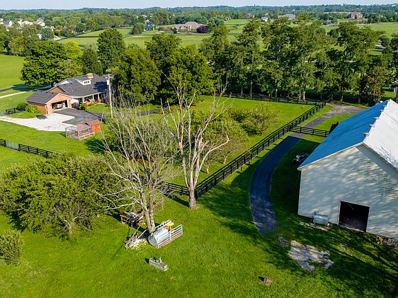 Endless possibilities exist with this 5+ acre farm, less than 5 minutes from Downtown Versailles . The all-brick ranch on a basement is exquisitely appointed: Granite, Hardwood, Custom Built-ins and Cabinetry, even a built-in ironing board in the oversized utility room, Wooden Shutters, Stainless Steel Appliances. A double island Kitchen A Chef's Delight! Entertainment options are unlimited: Open concept Kitchen and Family Room that also opens to a lovely patio. Beautiful Master Suite with a Steam Shower for a Spa like experience. Lower level Rec Room with Kitchenette and large Multi-Purpose Room. BRAND NEW ROOF and HVAC. Gorgeous views, mature orchard, 40 x140 'Castle Inspired Barn' with multiple stalls, 4 Plank Wooden Fencing and Run-in Shed are just a few features you will find outdoors. Minutes from Downtown, Falling Springs, Schools and Parks, yet you feel like you're in the Country.