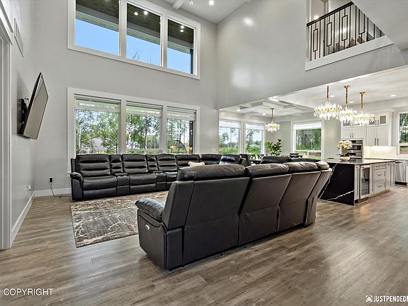 Luxurious custom builder's home nestled in a beautiful Jewel Estates & within Wasilla city limits! Landscaped & extensively upgraded! Custom kitchen w/ dbl oven, dbl dishwashers, beverage cooler, 36inch induction cooktop! Huge corner pantry! Very open floor plan w/lots of windows & natural light! Main level master suite features in-floor heating in the bathroom, stand alone tub & gorgeous stonedetailing, w/in shower and sauna. Large sized bedrooms on the second floor with lots of closet and storage space! Second floor family room w/gas fireplace. Huge 4-car garage, gutters, OnDemand water heater & water softener, 2 furnaces. Laundry room has 2 washers & 2 dryers + built-in steamer! Deck and a balcony w/ ease of access from the adjoining rooms! This is truly a must see!!! LL is related to the seller.