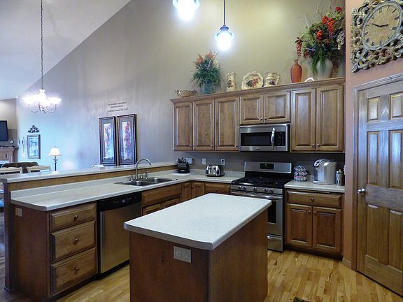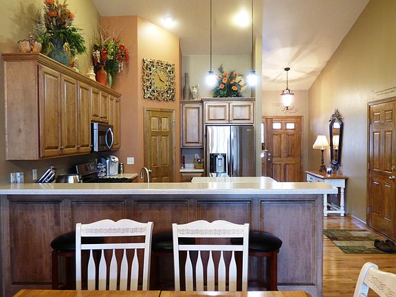 Pamper Yourself with Luxury Grade Surroundings! 10ft Ceilings + Cathedral, Master Suite with Tile shower and Whirlpool Tub. Extra long Walk-in Closet! Excellent Breakfast Bar + Kitchen Island and Pantry. First Floor Laundry with Cabinets and Closet. Hardwood Floors, Corner Fireplace, Big TV, Backyard Deck with peaceful Wooded boundary.