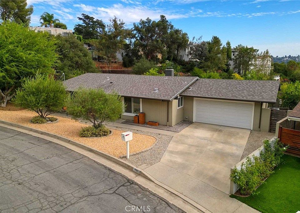 JUST REDUCED!!! Tremendous value on this Mid-Century classic home in an idyllic, pastoral setting in the sought-after San Rafael Hills area of Pasadena.A Located on a tucked-away cul-de-sac, this home has been beautifully remodeled for both comfortable and gracious living.A Inside, the home enjoys beautiful wide plank flooring throughout.A The living room is fully open to both dining area and kitchen.A The light & bright living room enjoys vaulted ceilings oriented to the outdoors and anchored by a fireplace with stone surround and mantel.A Adjoining dining area features custom chandelier and sliding glass doors overlooking the patio.A The kitchen was lovingly remodeled by someone who loves to cook—and you can tell.A Beautiful white cabinetry, quartz clad countertops and backsplash, and stainless appliances, recessed and pendant lighting.A The bedroom wing includes 3 bedrooms and 2 redone bathrooms, including a master with private A¾ bath.A Outside, the patio is beautifully designed with a custom retractable awning for outdoor entertaining.A A An attached 2 car garage has direct access.A The expansive grounds have been professionally designed and feel sculptural, with drought tolerant plantings and paths that invite you to meander throughout the yard.A This yard is framed by hillside, giving a feeling of complete privacy and serenity as you enjoy your new home.