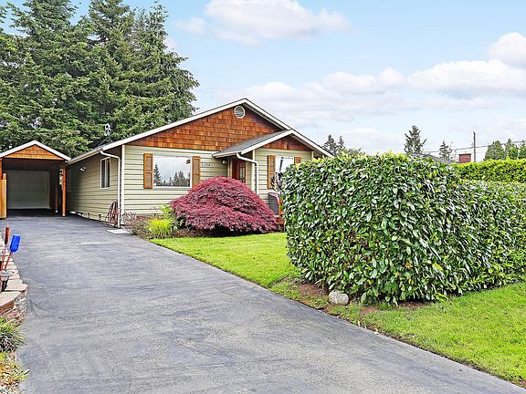 This light and bright Seahurst home is the perfect in-city retreat. Located across from Lake Burien School Park, it is a remodeled two bedroom, 1.75 bath, 1360 square feet home with an open concept design. Featuring oak and birch hardwood floors, maple cabinetry and built-ins, this home has tasteful finishes. The large living room includes a gas fireplace with mantle. The dining area is big enough for entertaining and features a built-in China hutch, cabinetry beneath the bay window and a skylight. The true baker's kitchen has 3 ovens! Plenty of counter space to prepare any recipe and cabinets for kitchen storage. In the three-quarter bath, the custom stone work is beautiful. It offers an oversized shower with rain head, shower jets and glass doors. The king size master bedroom includes an ensuite full bath with skylight also with custom stone work, rain head, shower jets and glass doors. The second bedroom is currently used as a study. Laundry, broom/vacuum and linen closets allow for clutter free storage. This home also offers great outdoor spaces. The front deck overlooks the park and has western exposure. The private, intimate back patio and deck is a great space for entertaining. There is room to garden and also room for play. It features a detached one car garage and carport. Gas heat, kitchen stove, hot water and fireplace. Close to the wonderful shops and restaurants in Olde and downtown Burien and public transit. A special home in a special community!