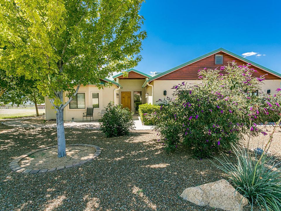 In the sought after area of Dewey, AZ; this marvelous Ranch style home is filled with custom design elements that you are sure to love! The wonderfully light living space includes 3 bedrooms and 2 bathrooms. The spacious kitchen in this home will have you looking forward to preparing every meal! You will never run out of room with the cabinetry and extensive counter space.The luxurious master suite is fit for royalty! Soaring vaulted ceilings, the open floor plan, and expansive master bathroom will have you never wanting to leave your master oasis.Outside, you are greeted with a gorgeous covered patio; perfect for entertaining! Picturesque views of the country landscape and mountainous horizon are exactly what you want surrounding your new home! This horse property has everything you.