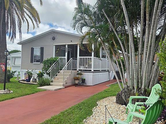 NO LAND LEASE. YOU OWN THE LAND! THIS LIGHT AND LOVELY MANUFACTURED HOME IS THE PERFECT MOVE IN READY GET-AWAY OR FULL TIME HOME IN DELRAY BEACH. THE HOME HAS A GREAT OPEN FLOOR PLAN FEATURING A LARGE LIVING ROOM AND DINING ROOM. YOU'LL LOVE THE UPDATED KITCHEN WITH STAINLESS STEEL APPLIANCES,CENTER ISLAND WITH GRANITE COUNTERTOPS THROUGHOUT., THE PRIMARY BEDROOM HAS AN ENSUITE BATH WITH SHOWER AND DOUBLE CLOSETS. SPEND COUNTLESS HOURS ON YOUR COVERED PORCH FEATURING TREX DECKING FOR LOW MAINTANANCE. THERE'S ALSO A SIDE YARD AND A SHED FOR PLENTY OF STORAGE. DRIVEWAY PARKING FOR CONVENIENCE AND ALSO PARKING FOR YOUR RV OR BOAT IN THE COMMUNITY FOR A FEE. BEING LESS THAN 10 MINUTES FROM THE BEAUTIFUL DELRAY DOWNTOWN AND AWARD-WINNING BEACH MAKES THIS THE PERFECT CHOICE! 55+ COMMUNITY. WATER AND SEWER INCLUDED IN MAINTANANCE FEE