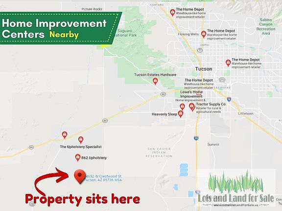 This incredible 1.36-acre lot is perfect for your forever dream home. It sits right beside 14672 W Crestwood St, Tucson, AZ 85736. For Directions, you can put these coordinates into Google maps and it will take you right to the property: 31.984467, -111.275277.