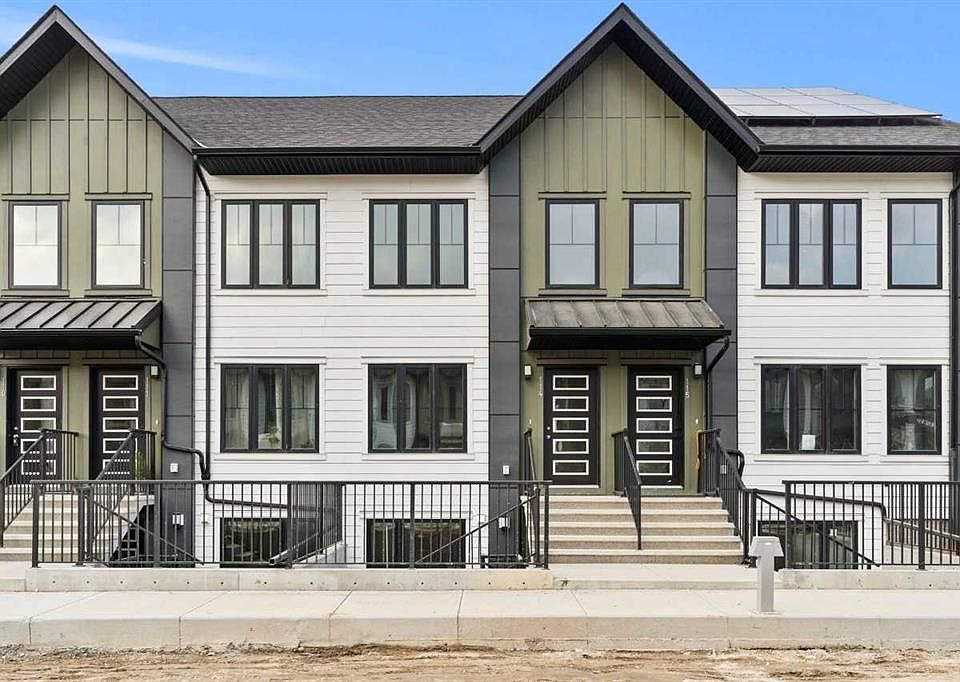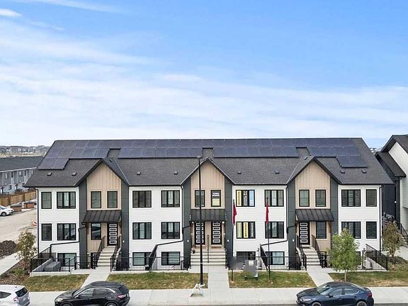 Welcome to the Ambrosia by Avalon Master Builder, 2-bedroom, 2.5-bath two-storey townhome in Livingston. This home is built with energy-efficient features including triple-pane windows, advanced insulation, and a solar panel rough-in. The open-concept main floor includes luxury vinyl plank flooring, recessed lighting, and a living/dining area with access to a fully fenced backyard that includes a BBQ gas line, landscaping, and irrigation. The kitchen is equipped with quartz countertops and a Whirlpool appliance package. Upstairs, each bedroom has an ensuite bathroom, along with convenient upper-floor laundry and an additional 4-piece bath. Exterior features include durable Hardie Board siding. Located near the Livingston Hub with access to parks, rink, and courts, and with quick access to Stoney Trail, YYC Airport, and CrossIron Mills.
