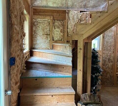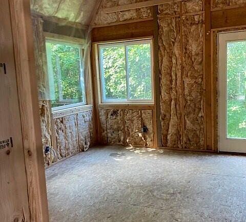 Dry cabin in the woods just waiting for the finishing touches. Has electric, is insulated and plumbing has been stubbed for bathroom with some materials to finish plumbing. Sits on 6x6 pilings on concrete 4ft. into ground per seller. Great getaway cabin or finish up and live in year round. Has an oil monitor Toyo stove that needs to be installed.