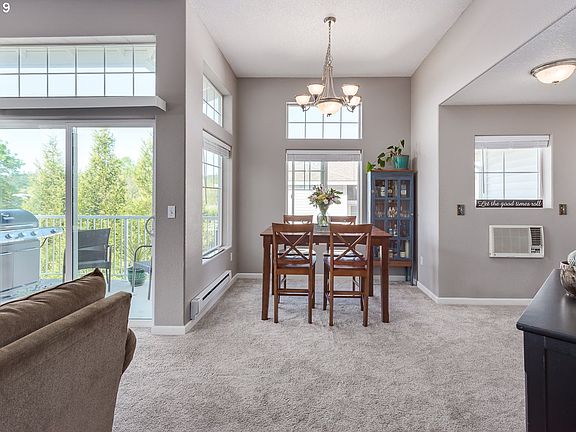 Looks like new! Fresh paint, new carpet, new roof (2020) & $1,500 credit at closing for window treatments! End unit with abundant natural light, high ceilings, gas fireplace, 2 wall A/C units & oversized/attached garage! Master suite features two sinks, walk-in closet & soaking tub! Private covered deck & front porch. Washer, dryer & refrigerator included, move-in ready! Low HOA dues. Close to shopping, restaurants, parks, bus & more! Check out the 3D tour! A must see!