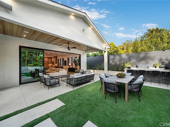 SOUTH OF THE BLVD! Stunning one-story home, newly remodeled and expanded, on a large secured gated lot in prime Sherman Oaks, south of Ventura Blvd.! Featuring 5 BR - 6.5 BA main home and cabana in over 3,700 sqft on an approx. 11,000 sqft lot. Gourmet kitchen with custom white oak cabinetry features quartz countertops, center island with bar seating and waterfall design, stainless-steel appliances, and extra large walk-in pantry. Kitchen seamlessly flows into spacious dining area and family room with electric fireplace, brick accent wall, custom shutters on living room windows, and sliding glass doors to covered patio. Spacious backyard features BBQ area with bar seating, large turfed grassy area, pool/spa, and cabana with three-quarter bath. Primary suite features surround sound speakers, custom accent wall, walk-in closet, and bright primary bath with custom tile work and soaking tub. Home is completed by entertainer/designer details such as custom woodwork and tile work, surround sound speakers, Control 4 smart home system, and a comprehensive security system complete with a security gate, alarm, and cameras. With close proximity to shops and restaurants on Ventura Blvd., this home is a true oasis and a must see!