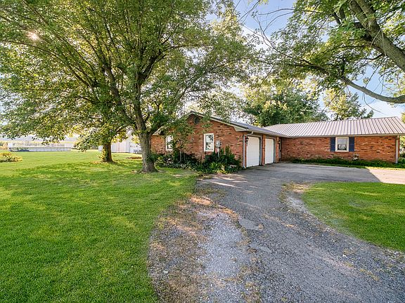 Country Escape in a rural setting! This lovely brick ranch nestled on 1.80 acres has 3 bedrooms, 2 baths, & a deep 2 car attached garage. Step inside & you'll find a spacious living room featuring laminate flooring, an open-concept kitchen/dining/family room combo with luxury vinyl plank flooring & plenty of room for gathering with family and friends. The kitchen is equipped with nice stainless steel appliances. But that's not all-this property is packed with extras including vinyl replacement windows, metal roof, & a covered patio to relax or entertain outdoors. There is also a detached garage with electricity, overhead garage door, and opener & a 24x24 pole barn with concrete floor that's perfect for hobbies, storage, or a workshop. The 16x24 Kayak above-ground pool can add to your summer fun. Come check out this rare country gem!