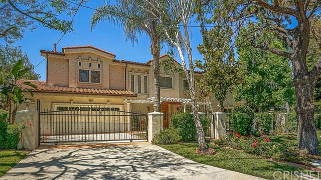 Custom Mediterranean Estate Home in Sherman Oaks. Newer built and Located Behind Privately Secured Gates. Grand Entry with Wrought Iron Staircase. Large Living and Dining Room, Separate Family Room with Fireplace, Balcony, and High Ceilings. Large Eat-in Kitchen with Sitting Area, Lots of Cabinetry, and Professional Line of Stainless Steel Appliances. Home Offers a Private Level Complete with Bonus Room Ideal for a Media Room, Home Studio, or Gym Along with a Game Room, and Guest Room with Private Bathroom. Main Level also Offers One Large Bedroom with Full Private Bathroom along with Powder Room. Upstairs you will Find a Library Room, Secondary Bedrooms with Jack and Jill Bathroom, and Large Master Bedroom with Retreat, High Ceilings and Fireplace with Large En-Suite Bathroom Featuring Dual Sinks, Steam Shower and Separate His and Her Walk-In Closets. Resort-like backyard with Covered Patio Area Designed for Large-Scale Entertaining, Jacuzzi, and Grassy Yard, Room for a Pool, Surrounded by Large Lush Trees Providing Privacy and Prestige.