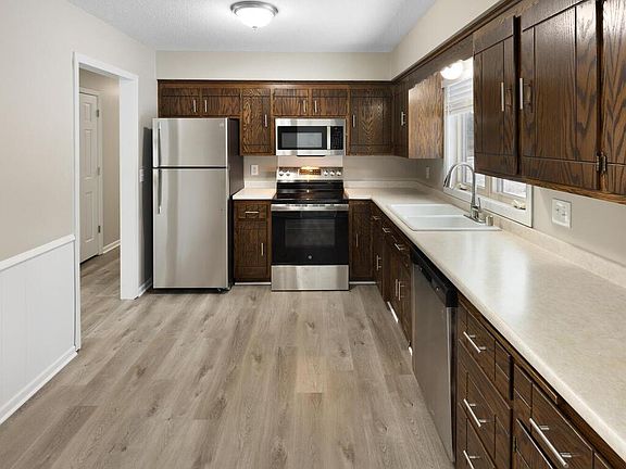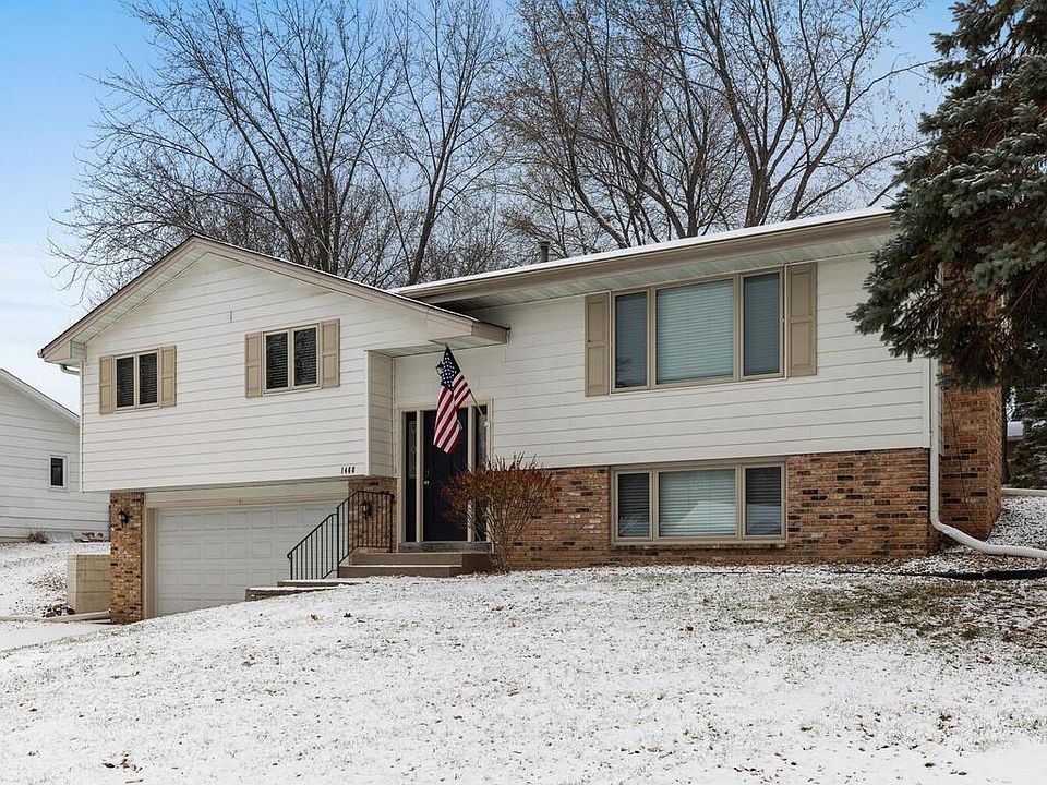 Updated split entry home located in the highly regarded Mounds view school district. This homes interior features freshly painted walls and trim, new luxury vinyl flooring and new carpet in the bedrooms. Kitchen boasts all new stainless steel appliances. The adjoining dining room offers easy access to the patio through a brand new sliding glass door. Three generously sized bedrooms all on one level. Large lower level family room has all new flooring and a wood burning fireplace. Fabulous, spacious flat backyard offers a 13 x 11 shed that can be used as storage, a playhouse, workshop, whatever fits your needs.