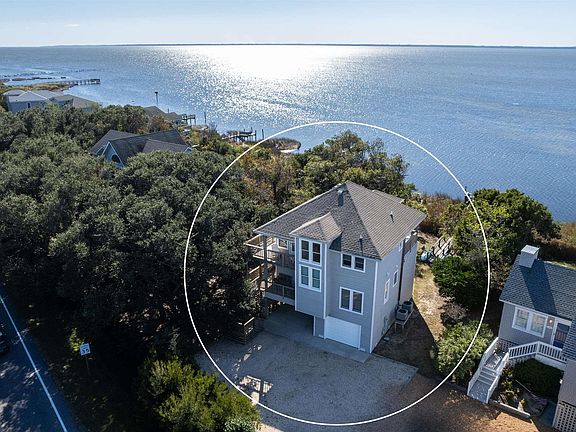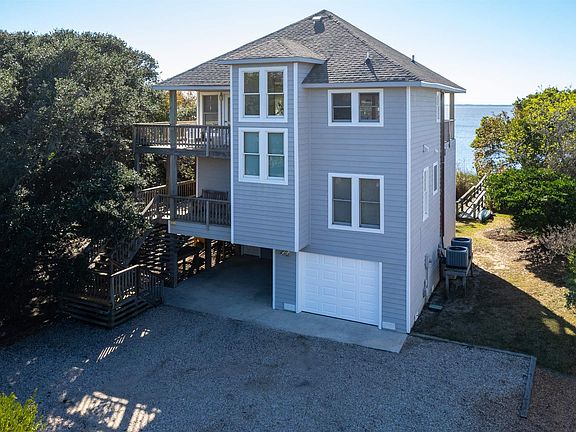 Charming, well-maintained, and professionally appointed home on the soundfront! With 4 bedrooms (one en suite), 2.5 baths, and direct sound access in the lovely Sanderling community of Duck, NC, this property features modern updates and upgrades while preserving Old Outer Banks charm and coastal comfort throughout. A bright foyer entry greets you on the first floor where you will find a spacious king ensuite with captivating views of the sound, direct deck access, bay window seating, and an updated bath with dual vanities, a spacious soaking tub & shower. Three additional bedrooms (one currently used as an office/studio), an updated full bath, and laundry. The covered porches show off views of the water and offer numerous places to relax and unwind in the shade. On the second floor, a large open concept living room boasts quality comfort with tastefully upgraded furnishings and fixtures, ample seating, and decks surrounding overlooking the sound with privacy found from the live oaks. A large dining table is the perfect place to gather with friends & family or catch an unforgettable sunset from the privacy deck just off the kitchen with island seating, and half bath. The homes high elevation accommodates room for an exterior storage closet, garage, workshop, carport, and outdoor shower. Spend time fishing from the private dock with bench seating, or launch kayaks and paddleboards out for a spin on the Currituck Sound. Enjoy an afternoon on the beautiful wide sandy beaches of Sanderling, just a short walk or bike ride from the home. Currently serving as a second home, it is the perfect size, condition, and location for a full time residence, second home, or investment opportunity with the freedom of deciding as the new owner!