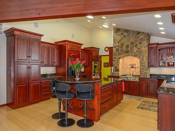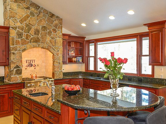 True custom Ranch walk-out on .9 acre treed site*Vaulted great room with rock fireplace, stunning windows & built ins*Chef's dream, gourmet kitchen w/slab granite, professional 6 burner gas cook top, double convection ovens, extra vegetable sink,4' X 8' island with raised breakfast bar, 6' X 8' pantry & Dynasty by Omega soft close cabinetry* master suite has a gas fireplace, morning coffee deck, pa-like 6 piece bath, jetted tub & walk-in closet*Finished walk-out basement includes kitchenette with sink and bar plus 2 bedrooms, 1 1/2 baths with jetted tub, family room w/ fireplace, separate entrance*