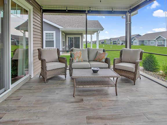 Indulge in the perfect blend of comfort and sophistication in this meticulously maintained 2-bedroom, 2-bathroom paired villa duplex, nestled within the sought-after Greystone subdivision in Dyer, Indiana. This charming home is a testament to modern living, featuring all the builder's best upgrades for an elevated lifestyle. The spacious interior boasts vaulted ceilings, accentuating the sense of openness and luxury, while the two bedrooms offer a cozy retreat. As you step through the front door, you'll be captivated by the elegant upgrades and attention to detail. The living area seamlessly extends to the screened-in porch, adorned with ceramic tile flooring, upgraded lighting, and sun shade blinds where you can unwind and savor quiet moments in your private oasis. Additionally, the 2.5-car oversized garage with epoxy flooring ensures both convenience and ample storage. The HOA covers snow removal, yard maintenance, and water for irrigation system. Schedule your showing today!