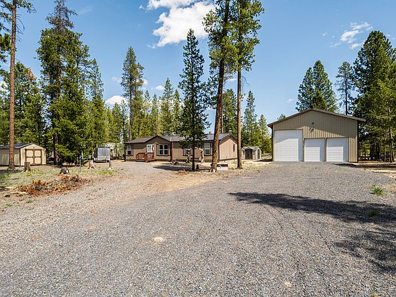 Lovely well maintained home in Jack Pine Village offers a peaceful retreat 8 miles from La Pine that is perfect for those seeking a tranquil getaway or a full-time residence. This beautifully maintained three-bedroom, two-bath home with an office has been updated with new baseboards/flooring, a new kitchen sink, a complete bathroom upgrade, new storage in the laundry room, a large deck, and a new lifetime maintenance-free metal roof installed in 2023. This fully fenced and gated lot backs up to Natural Forest Land adding to the privacy and recreational opportunities right out your back door. A new 33'x40' pole barn on a 4'' concrete slab with 2- 8x10 ft automatic doors and one 12x14 manual door provides plenty of room for up to a 24' RV, 4 cars or all your storage needs. Central Oregon's High Lakes are just a short drive away, outdoor enthusiasts will find plenty of opportunities for fishing, hiking, and exploring nature.