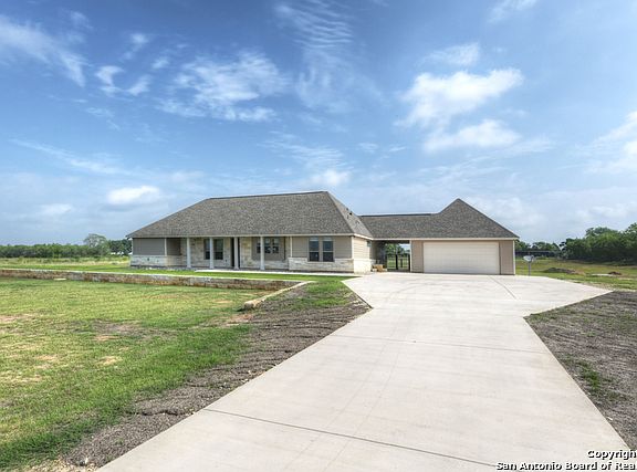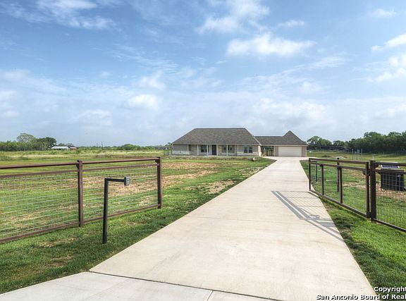 Tired of the city then enjoy country living in your 3 bedroom, 2 bath home on 5+ acres with a pond! Just outside 1604 in St Hedwig, this beauty has an open floor plan with high ceilings making entertaining a dream! If outdoor living is preferred choose from your covered patio plus extended paver patio or the huge fenced yard for evenings under the stars. An oversized garage has space for a work area and extra wide, tall garage doors for those extra tall Texas trucks. Garage has easy access from the breezeway or the overhead door that overlooks the yard. Chef will enjoy the country view from the sink, miles of granite countertops and an island with space for seating. Spacious primary bedroom has an ensuite that includes blocking for future grab bars in water closet and shower. Shower has low threshold for easy access. Did I mention the doors in the home are extra wide? Front door is over 42"! The secondary bedrooms are also generous in size! Have a pet that needs a bath or need to rinse your feet from playing in your future garden? The laundry room has an area for a quick rinse! While your home has East Central Special Utility Water service there is a well for the property. The well house is insulated and there are additional water spigots located around the property, it can even feed the pond! The entire 5+ acres is fenced, cross fenced with a concrete driveway and electronic gate! Come see it today!
