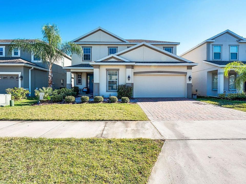 This beautiful Biscayne Bay pool home is located on a conservation site and is a large 2,839 sq. ft. 5 bedrooms, 2 1/2 baths, 2 car garage home. This home offers a large loft on the second floor. The kitchen is open with granite counter tops, 42" upper cabinets, GE Stainless Steel appliance package (Microwave, dishwasher and smooth top range) and over-sized kitchen island with breakfast bar and dinette. Enjoy your large, first floor, 13x16 owner's bedroom and large owner's bath with over-sized shower, dual sinks with raised vanity and marble counter tops and 2 walk-in closets. This home is perfect for entertaining with it large open kitchen, vaulted ceilings and 8' tall triple sliders opening to a 13'6" x 9' Covered lanai and a beautiful pool, in-ground Jacuzzi and outdoor kitchen that will make you want to stay poolside all day long. Other included features are 18 x 18 ceramic tile throughout first floor, 9'4" first floor, 8' entry doors, vaulted ceilings, brick paved driveway and lead walk.The home is located in Hunter's Creek, the 21st best place to live in America! Living in Hunter's Creek gives owner's access to all of Hunter's Creek amenities including: use of their club house, 7 private parks, tennis, basketball, and volleyball courts, fitness, walking, biking, and hiking trails; and neighborhood events, clubs, and programs.