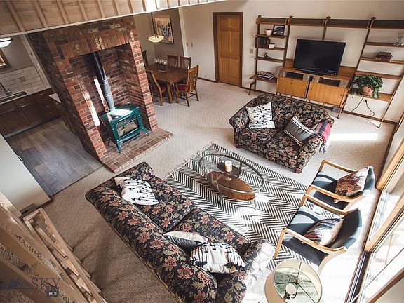 Unique energy-efficient home with exceptional views on 10 private acres. Home features expansive vaulted wood-paneled ceilings in living room and master suite with architectural skylights in kitchen, dining area and bathrooms. Eco-friendly design and upgrades include 15" exterior walls, earth berming, active solar radiant heating and a large ventilated solarium for extra living space, hot tub and/or greenhouse use. Updated kitchen features quartz counters, new stainless appliances and laminate flooring. Main level and loft den/office areas, one currently used as 3rd bedroom. Tons of storage in easy-access crawl space. Enjoy unobstructed views of the Spanish Peaks, a walk-out master suite balcony, and Bridger views and mature evergreens on northside. Property borders Flying D conversation easement open land. Light covenants, bring your horses! Garage is extra deep with workshop area. Great location midway between Bozeman and Big Sky and close to fishing and hiking in Gallatin Canyon.